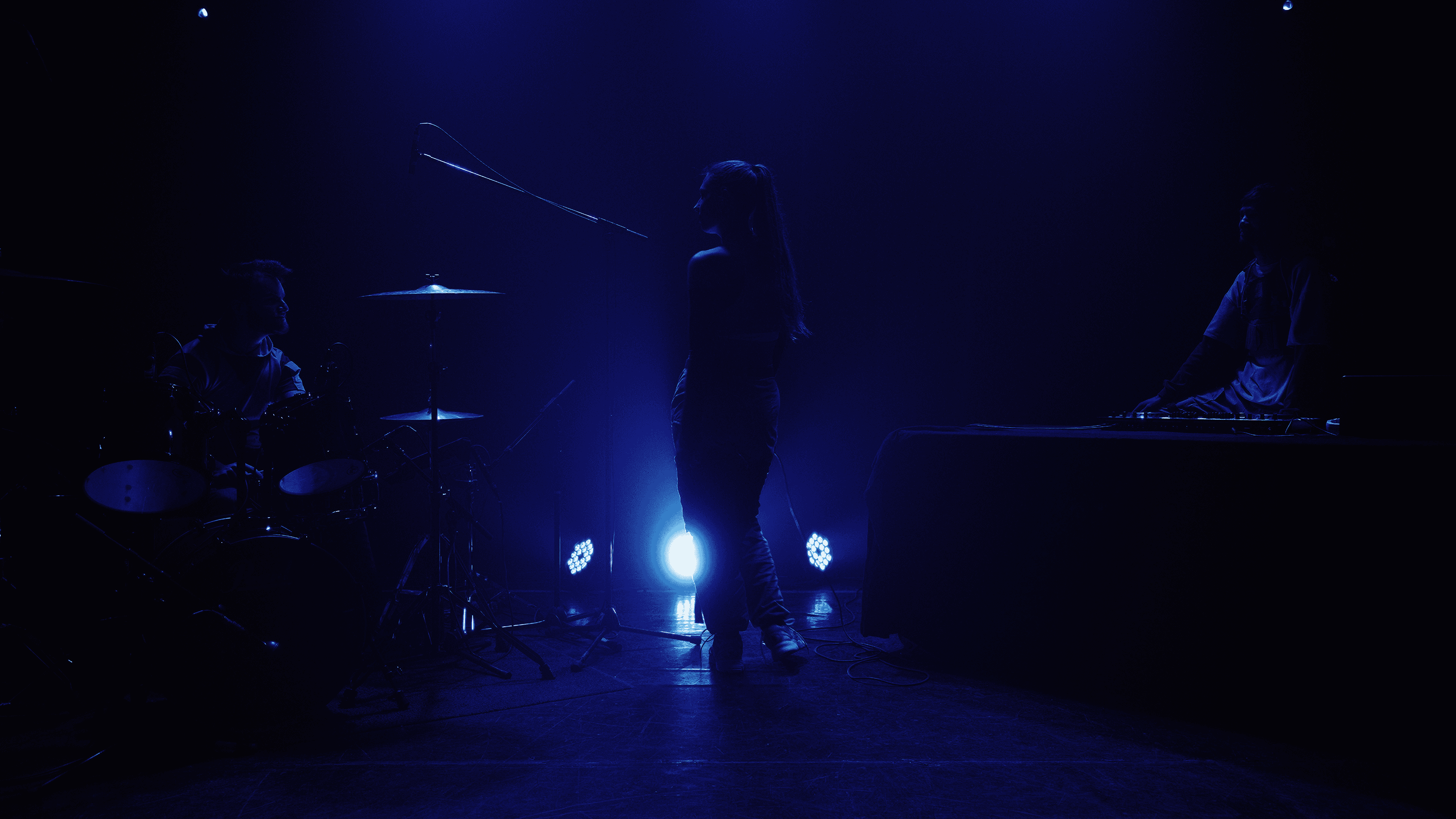 Kadeus réinvente le live électronique avec un set hybride où DJing, batterie et voix s’entrelacent dans une mise en scène soignée. Inspirés par le cinéma, ils construisent chaque performance comme une narration visuelle, mêlant VJing, lumières et costumes.